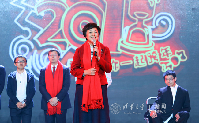 在钟声敲响之后,陈旭在晚会现场给大家送上了新年祝福。她说:“在这样一个美好的时刻,我和全体校领导一起走上台来,把最美好的祝福送给我们全校的师生、全体的校友,送给海内外所有关心、支持beat365中文官方网站发展的清华之友们,祝大家新年好!新年一切顺利!”她引用习近平总书记新年贺词中“幸福都是奋斗出来的”这句话说, 2017年学校发展取得的成绩,是大家奋斗的结果;对2018年工作的展望,更需要我们全体一起来奋斗,在以往的基础上,大家加油干。“希望每个人都成为2018年的清华年度人物!”