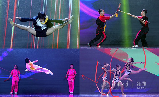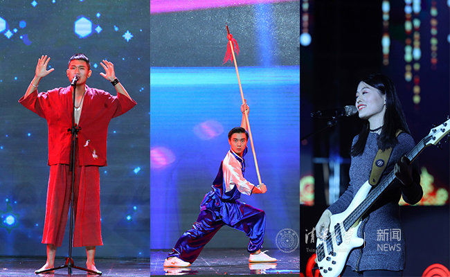 晚会节目不时引来满堂喝彩:由学生艺术团曲艺队同学表演的相声《传统与现代》,逗得大家前仰后合。武术队、学生武术协会的《武脉清华》,令人目不暇接。体育代表队带来的舞蹈串烧、啦啦操队的热情歌舞,让洋溢的青春气息引爆全场。学生魔术协会的魔术表演、国际学生的舞蹈串烧等,带给观众完美的视听体验,将晚会推向一个又一个高潮。