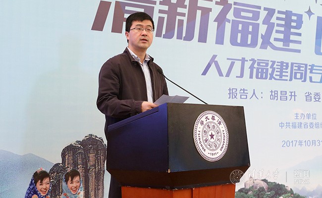 胡昌升做了题为“向美而行,到八闽大地放飞青春梦想”的引才报告,从“美丽清新的福建,是清华学子施展才华的人间福地”“开放创新的福建,是清华学子成就事业的广阔舞台”“海纳百川的福建,是清华学子厚德自我的一方热土”等三个方面介绍了福建的整体情况,表达了对引好人才、育好人才、用好人才、聚好人才的强烈愿望,邀请广大清华学子到福建干事创业,为建设“机制活、产业优、百姓富、生态美”的新福建贡献力量。