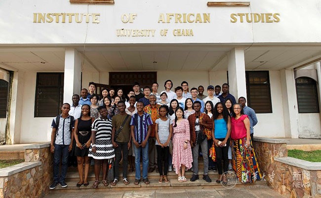 参与“全球南方文化浸润活动”的同学与加纳大学师生合影。 韩卓荦 摄