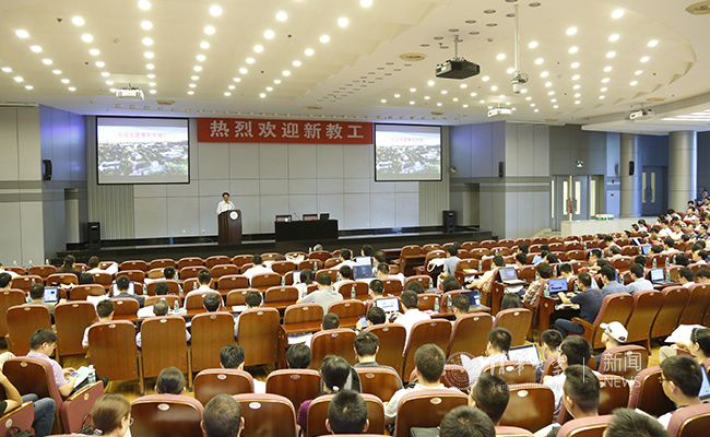 9月11日,副校长、教务长杨斌在西阶梯教室为全体新教师介绍了教育教学改革情况,深入解读“三位一体”的教学理念并诠释了“六个不等于”:教育不等于教学、课程不等于课堂、教课不等于讲课、名师不等于名嘴、考试不等于笔试、上课不等于听课,鼓励和要求新教师教书育人、全身心投入教育教学改革和育人工作。