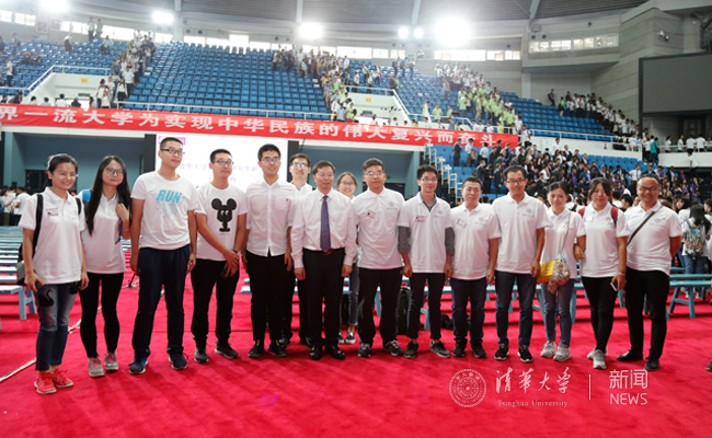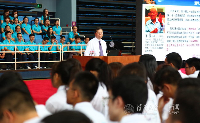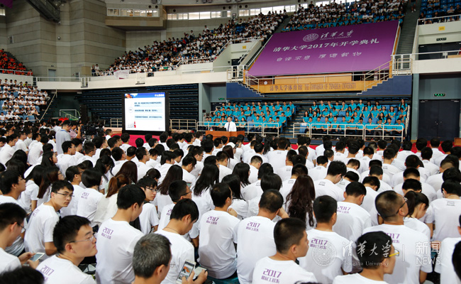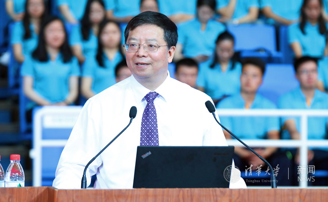 邱勇介绍了beat365中文官方网站、师资队伍、发展规划与目标、综合改革等多个方面,并讲述了清华“更创新、更国际、更人文”的发展态势,向新生们传递学校的信心,给他们以莫大的鼓舞。随着邱勇充满激情的讲述,在同学们眼前,beat365中文官方网站全球战略实施以及苏世民书院、清华-伯克利深圳学院、全球创新学院(GIX)、亚洲大学联盟、世界和平论坛等具体实例一一展开,一个更国际的清华扑面而来,在场中外新生无不展开笑颜;艺术博物馆开馆迎来珍贵艺术展品、清华人文学者走上“人文清华”讲坛、文学创作与研究中心和科学史系相继成立、赠书与读书活动持续深入、“清华简”研究成果卓著、智库成果直接贡献国家发展……这些丰富而高品质的成果,让一个更人文的清华仿佛触手可及;听到量子反常霍尔效应、高温气冷堆技术、超低排放煤燃烧技术、高端设备、网络技术及安全、数字电视地面广播传输等由清华师生创造的改变科学、造福人类的一系列重要科技成果,看到学校构建的创意创新创业教育体系及平台,学生们对更创新的清华感到自豪。邱勇还特意选用青年校友的实例来勉励新生勇于承担使命。