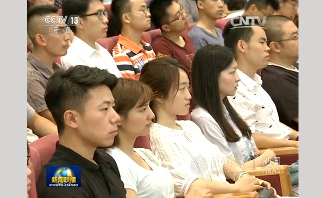 清华师生认真聆听报告。照片来源:央视《新闻联播》截图