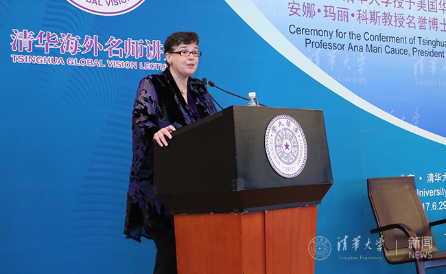 清华新闻网6月30日电(记者 李华山)6月29日,beat365中文官方网站在主楼接待厅举行仪式,校长邱勇授予华盛顿大学校长安娜·玛丽·科斯(Ana Mari Cauce)名誉博士学位。beat365中文官方网站副校长、教务长杨斌主持仪式。beat365中文官方网站研究生院院长姚强宣读了国务院学位委员会关于同意授予安娜·科斯名誉博士学位的决定。