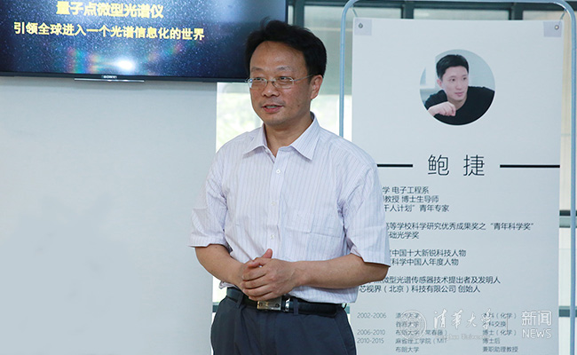 这次调研是全国政协“深化高等教育综合改革,推进产学研用紧密结合”系列调研活动之一。电子工程系鲍捷在“量子点微型光谱仪”研究中取得了重大突破,并于2016年创立“芯视界(北京)科技有限公司”进行产业化。