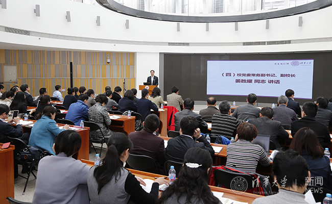 姜胜耀强调,今年要重点做好几个方面工作:一是根据中央要求,推进“两学一做”学习教育常态化、制度化,研究制定学校的实施办法;二是进一步落实党建责任制,明确院系和党支部两级书记的责任清单,探索研究基层党建工作考核指标体系;三是要持续做好在学术骨干和青年教师中的党员发展工作,特别是加强对海外归来的新入职青年教师的政治引领和政治吸纳工作;四是要进一步加强干部的选拔培养和教育管理工作,加快制定完成《关于进一步加强“双肩挑”干部队伍建设的意见》,启动新一轮院系中层后备干部调研,从严从实做好干部日常监督管理工作。