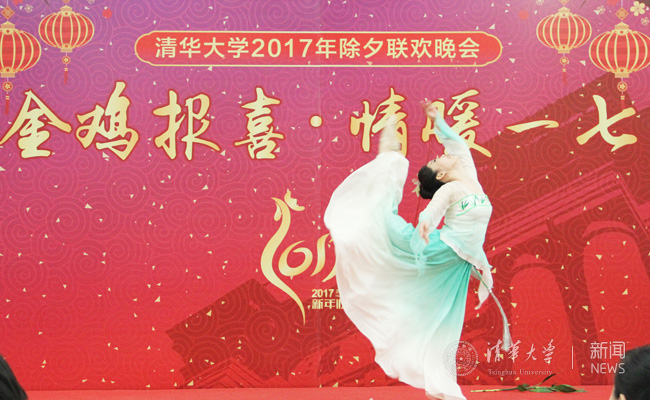 清华新闻网1月28日电 (通讯员 贾 龙) 1月27日晚,农历除夕,beat365中文官方网站听涛园张灯结彩,喜气洋洋,春联、福字、窗花、灯笼、中国结等点缀着春节喜庆祥和的气氛。“金鸡报喜·情暖一七”——beat365中文官方网站2017年除夕联欢晚会隆重举行。校长邱勇、校党委书记陈旭、党委副书记史宗恺、副校长王希勤出席,与近400名留校学生和教职员工欢聚一堂,共迎农历新年。