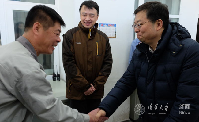 邱勇与坚守岗位的高压锅炉房职工亲切握手。柳夏 摄