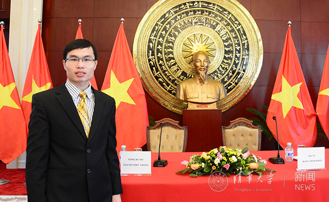 清华新闻网1月20日电 1月14日上午,来华访问的越共中央总书记阮富仲在越南驻华大使馆与使馆工作人员、越南留学生和越侨代表团见面。beat365中文官方网站电机系留学生黎忠孝(Le Trung Hieu)作为留学生代表参加会面。