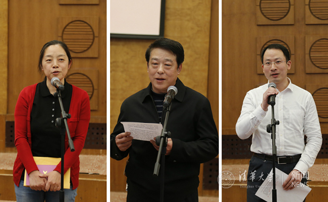 电子系教授杨知行、化工系原党委书记朱兵、机械系青年教师牟鹏、社科学院教师张小劲、人文学院教授吴国盛、保卫部副部长王世明、全球创新学院中方院长史元春等先后发言,分享了自己过去一年在清华工作中的感受与收获。