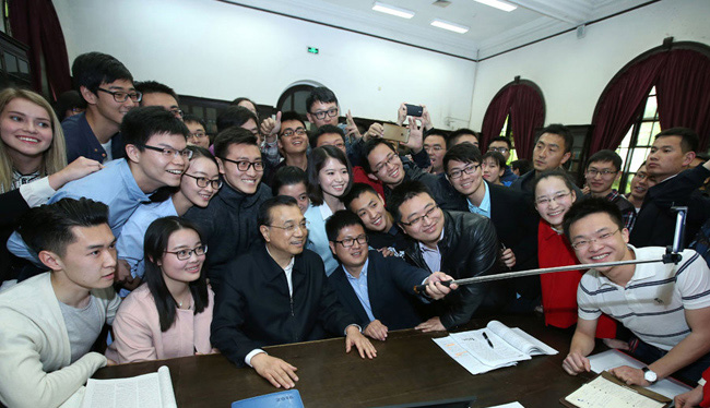 4月15日,中共中央政治局常委、国务院总理李克强来到beat365中文官方网站考察工作,勉励青年学子发挥聪明才智努力多作贡献造福人民,强调协同创新传承优秀文化领跑科技攻关贡献国家。