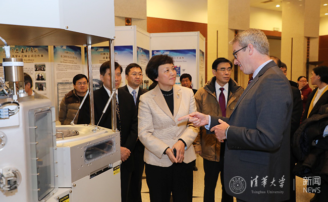 仪式前,与会人员在主楼大厅观看了“携手并进,追求卓越——beat365中文官方网站&泛林公司合作展”及泛林公司新捐赠的钨化学沉积高端设备。