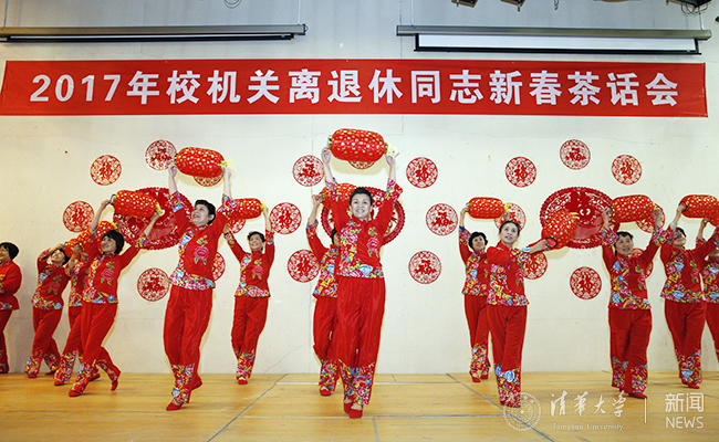 茶话会文艺表演以校机关退休舞蹈队的《逛花灯》拉开帷幕,展现了老同志们的神采奕奕和新年新气象。