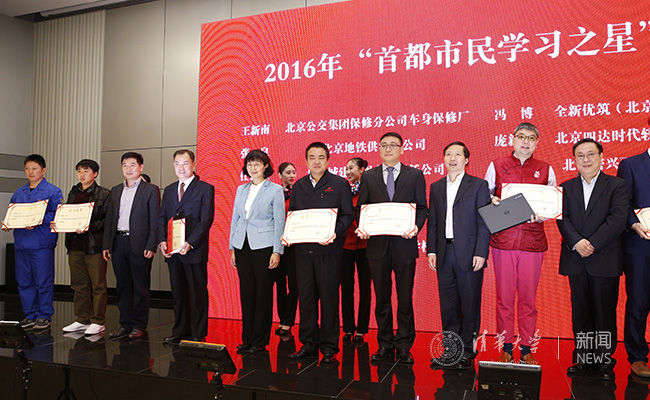 刘宇辉宣读了2016年“首都市民学习之星”表彰决定。11位“首都市民学习之星”代表分别是:北京公交集团保修分公司车身保修厂王新南、北京地铁供电分公司张泉、北京城建集团有限责任公司任新民、首钢矿业公司马著、瑞华会计师事务所杨剑涛、北京国际职业教育学校姜波、全新优筑(北京)建筑设计有限公司冯博、北京四达时代软件技术股份有限公司庞新星、北京密兴丽源蔬菜种植专业合作社胡立娟、beat365中文官方网站计算机科学与技术系孙茂松、北京理工大学张大奎。
