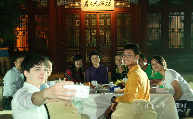 在大家品尝月饼赏月的时候,陈旭说,很高兴能在中秋佳节与新同学举行“家庭聚会”。她说,清华人相聚在清华之家——藤影荷声之馆与小五爷园坐落的工字厅,希望能在传统的四合院里,让同学们感受中华大家庭的温暖,缓解思念亲人的情绪,一起欢度佳节。