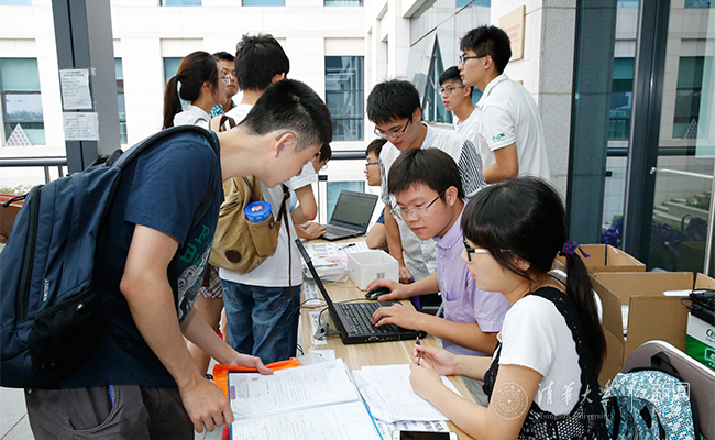 在迎新现场,记者看到各项工作正在井然有序地进行。研究生新生在综合体育馆集中办理缴费、IC卡学生证和落户等手续。各院系迎新报到环节则在各个院系分别进行。在体育馆南侧,多名研究生志愿者也参与到迎新工作中,为新生答疑解惑,校园地图、遮阳棚、饮料小食品购买处等在细节之处体现出对新生的贴心服务。体育馆南门外,排列着研究生特等奖学金、学术新秀和启航计划学生等一系列介绍展板,吸引了很多新生驻足观看。