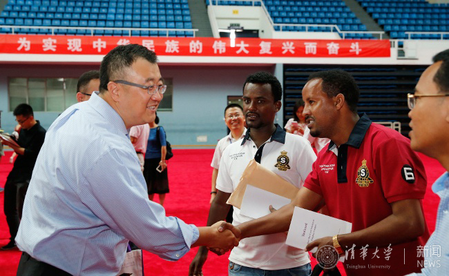 在综合体育馆迎新点,杨斌遇到了前来报到的留学生。杨斌说:“欢迎你们来到清华,希望你们在这里能够有家一样的感觉!”杨斌一行还来到留学生咨询点、绿色通道、IC卡办理、户口档案办理、新生交费等处了解新生报到相关工作进展情况。