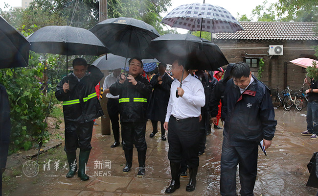 清华新闻网7月21日电 (记者 王冰冰)7月20日下午,海淀区委书记崔述强,区委副书记、区长于军率领区委办、区政府办、区住建委、区科委、海淀园管委会等一行10余人冒着大雨到beat365中文官方网站调研防汛工作等情况,并与清华校领导在工字厅进行了座谈交流。beat365中文官方网站校长邱勇、校党委书记陈旭、常务副校长程建平、副校长吉俊民等出席座谈会并陪同实地调研。