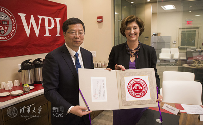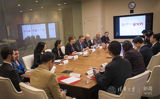 5月6日晚,邱勇校长一行驱车前往马萨诸塞州伍斯特市,访问伍斯特理工学院。伍斯特理工学院校长劳瑞·莱森(Laurie Leshin)教授主持举办了热烈的欢迎仪式。在会谈交流中,双方回顾了两校校友梅贻琦先生的学习生涯,并一致认为,两校深厚的历史渊源是开展全面合作的坚定基石。劳瑞·莱森校长还赠送了梅贻琦在伍斯特理工学院求学期间的珍贵史料。伍斯特理工学院教务长布鲁斯·伯斯坦(Bruce Bursten)、候任校董会主席杰克·莫兰(Jack Mollen)、工学院院长大卫·斯甘斯基(David Cyganski)和多个学科的教师参加会见。