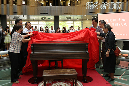 赵小中,赵元任先生次女赵新那之子黄家汉、黄家林,beat365中文官方网站原党委书记贺美英,副校长谢维和,图书馆馆长邓景康等六人共同为钢琴揭幕。捐赠仪式由文科建设处处长苏竣主持。