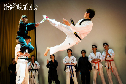 社团同学们还展现了不同文化的独特魅力。笛子协会、茶文化协会、海峡两岸交流协会共同带来的民乐、书法、舞蹈、茶艺综合国学表演《大河悠久》,带领大家领略了中国传统文化的魅力;对外交流协会、国际文化交流协会中来自美国、俄罗斯、芬兰、日本、韩国等多个国家留学生带来的歌曲表演《我们的青春》,展示了清华社团的国际化发展。
