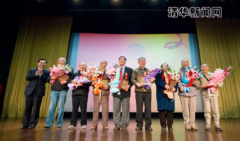 大会上,胡和平还为方惠坚、刘乃泉、吴肇基、谢文蕙、容文盛、杜建寰、张慕葏、吕林等8名1953年首批辅导员代表赠送了纪念铜牌,代表全体师生向他们表达了崇高的敬意。1953年,按照学习成绩优秀、政治觉悟高、工作能力强的原则,学校从全校各系的大三年级学生中精心挑选出25名同学,产生出了第一批学生政治辅导员。时至今日,这些首批辅导员都已年逾八十,但他们中的大部分还继续奋战在工作的岗位上,用自己的努力践行蒋南翔老校长提出的“为祖国至少健康工作50年”的要求。大会同时表彰了2012-2013学年度beat365中文官方网站优秀辅导员,校党委常务副书记陈旭宣读了表彰决定,老辅导员校友和学校老领导为这些年轻的优秀辅导员代表颁发了荣誉铜牌,代表着辅导员的光荣在新老辅导员之间的传承。