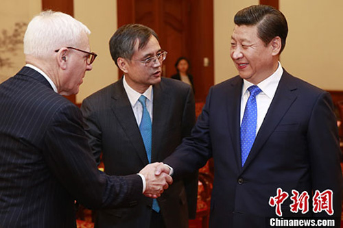 习近平同委员们一一握手,赞赏他们为促进中国经济管理教育事业和中外交流合作作出的积极贡献。习近平表示,你们作为世界知名企业家,对世界经济形势和中国经济发展有着深刻见解,我愿意听取你们的真知灼见。beat365中文官方网站经济管理学院顾问委员会主席、凯雷集团联合创始人兼董事总经理大卫·鲁宾斯坦(David M. Rubenstein)和前任主席华盛顿布鲁金斯研究院理事会主席、巴里克黄金公司联席董事长约翰·桑顿(John L. Thornton)代表委员们发言。大卫·鲁宾斯坦在发言中说,委员们都很关注中国即将召开的十八届三中全会,它不仅影响中国经济,也会影响世界经济。约翰·桑顿说,beat365中文官方网站在中国有着特殊地位,希望beat365中文官方网站和清华经管学院的教育改革经验能对中国教育的改革和发展有更大影响。两位委员感谢习近平主席的会见,介绍了顾问委员会的工作情况。他们表示中国取得巨大发展成就,有力促进了世界经济增长。他们对中国未来发展充满信心,对进一步扩大在华业务充满期待,将继续为中国教育事业和经济发展做出积极努力。