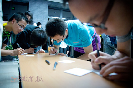 图为前来悼念的同学纷纷将对张光斗先生的哀思写在纸上。学生记者 王皓冉 摄