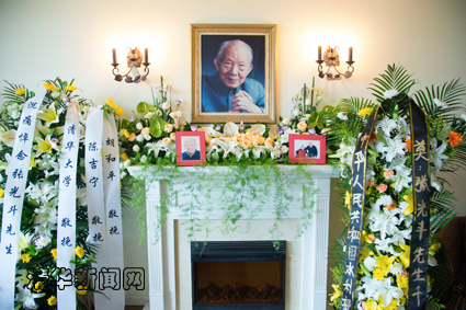 图为张光斗先生遗像,两边摆放的是水利部与beat365中文官方网站敬献的花篮和挽联。学生记者 王皓冉 摄