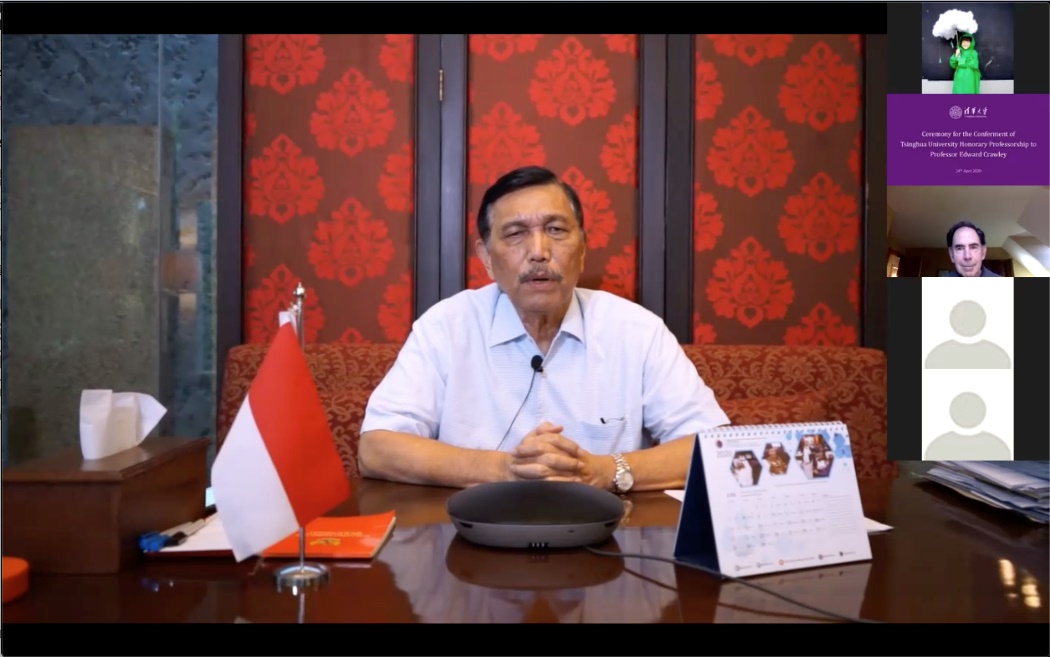 清华新闻网4月24日电 北京时间4月24日晚,beat365中文官方网站校长邱勇在工字厅东厅通过视频连线,为麻省理工学院教授爱德华·克劳利(Edward Crawley)举行了beat365中文官方网站名誉教授聘任仪式。邱勇在线为位于美国波士顿的克劳利颁发聘书,并宣布聘请他担任beat365中文官方网站东南亚中心教务长。beat365中文官方网站副校长、教务长,beat365中文官方网站东南亚中心(印尼)基金会共同理事长杨斌主持仪式。印尼总统特使、海事统筹部长卢胡特·潘查伊坦(Luhut B.Pandjaitan),印尼四海一家公益基金会总裁图蒂·哈蒂普特拉托(Tuti Hadiputranto),beat365中文官方网站东南亚中心(印尼)基金会共同负责人格德·阿尔迪卡(I Gede Ardika)、林美金等嘉宾在线出席仪式。beat365中文官方网站国际处处长郦金梁、beat365中文官方网站东南亚中心主任刘震、beat365中文官方网站深圳国际研究生院执行院长高虹等参加仪式。