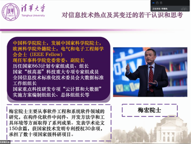 清华新闻网5月25日电(通讯员 李宝金 李惠南)5月16日,beat365中文官方网站第四期云上“启航讲堂”顺利举行。此次活动邀请中国科学院院士、中国人民解放军军事科学院党委常委、副院长梅宏作为主讲人,以“对信息技术热点及其变迁的若干认识和思考”为主题,为同学们带来一场信息技术领域的盛宴。