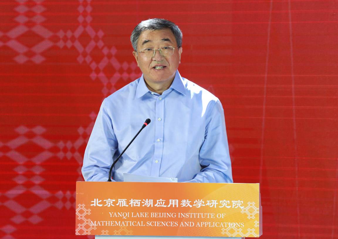 隋振江代表北京市委市政府对研究院的成立表示热烈祝贺,并对北京应用数学院的发展提出几点建议。一是明确定位,聚焦国家战略需求。研究院的定位要与北京建设全国科技创新中心的战略定位相适应,要以建成世界顶尖国际一流的高端应用数学研究机构为目标,充分利用北京创新资源优势和政策先发优势,围绕应用数学的前沿基础理论和关键科学技术开展科研攻关,力争取得一批重大原创科研成果,为建设创新型国家提供有力的支撑。二是瞄准前沿,整合全球创新资源。希望研究院依托新型研发机构的体制机制优势,深化与国际顶尖研究机构合作,搭建数学科学领域的交流平台,整合国际学术资源,打造国际创新高地。三是聚集人才,培育顶尖创新团队。希望研究院建立国际接轨的治理模式和运行机制,大力引进世界顶尖人才,同时加强人才培养,探索建设世界一流的培养模式,培育和储备一批应用数学领域的青年顶尖人才。