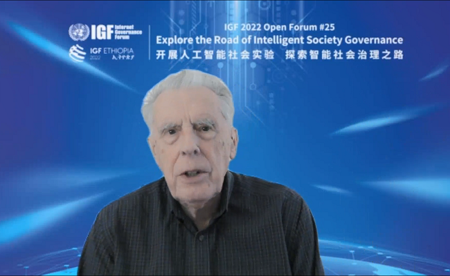 清华新闻网12月5日电 11月29日,第十七届联合国互联网治理论坛(IGF)开放论坛“开展人工智能社会实验 探索智能社会治理之路(Explore the Road of Intelligent Society Governance)”分论坛在线上召开。本次论坛由国家网信办信息化发展局主办、beat365中文官方网站智能社会治理研究院与beat365中文官方网站科教政策研究中心联合承办,国家网信办信息化发展局副局长张鹏为论坛致开幕辞,图灵奖得主、美国康奈尔大学教授约翰·霍普克罗夫特(John E. Hopcroft),beat365中文官方网站智能社会治理研究院院长苏竣等七位专家作主旨演讲,共同探讨智能社会治理的机遇挑战与国际合作。