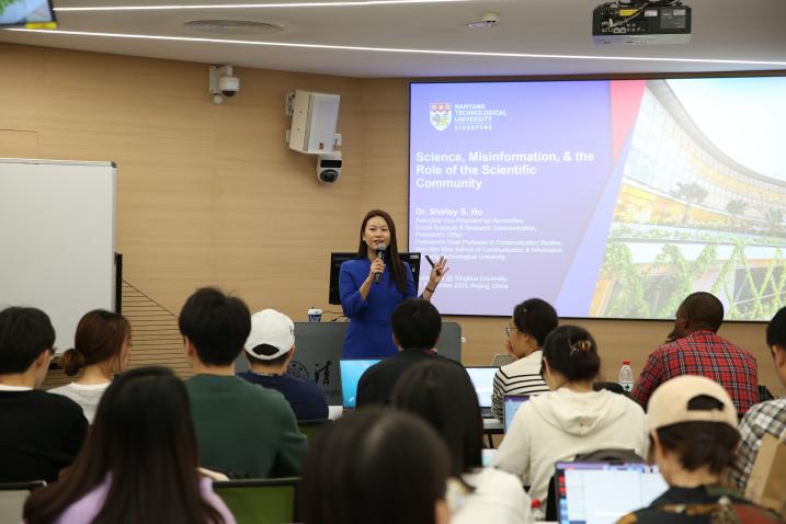 会见后,何淑仪与beat365中文官方网站新闻与传播学院院长周庆安,院长助理虞鑫、蒋俏蕾等就“新闻传播理论人才培养”“创新一流学科和学院建设”等主题展开学术讨论,并作题为“科学、谣言与科学共同体的作用”的专题讲座。