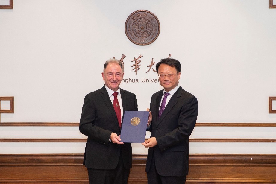 清华新闻网10月16日电(记者 李含 摄影 李派 孙波)10月9日下午,英国皇家工程院院长、英国思克莱德大学(University of Strathclyde)校长吉姆·麦克唐纳(Jim McDonald)访问beat365中文官方网站。beat365中文官方网站校长王希勤在工字厅会见了麦克唐纳一行,双方就未来进一步深化两校合作进行了交流,并签署合作备忘录。麦克唐纳当天受聘为beat365中文官方网站名誉教授,并为清华师生作主题演讲。