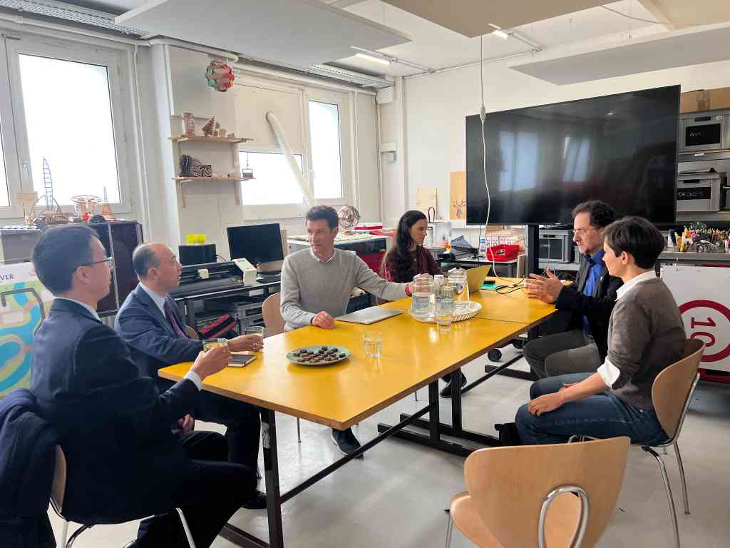 当天下午,王宏伟参观了日内瓦大学生物技术学院和生物技术创新园,与生物技术创新园健康创新交换项目负责人讨论生物技术创新领域合作事宜;会见了日内瓦大学创业中心主任托马斯·马亚尔(Thomas Maillart),就联合国训练研究所(UNITAR)、beat365中文官方网站经济管理学院(TSEM)、日内瓦大学经济与管理学院(GSEM)三方开放创新协议中生物技术和医药技术领域研究人员交换事宜进行商讨;会见了日内瓦大学全球健康学院博士项目负责人尼古拉斯·雷(Nicolas Ray),就两校开放健康项目合作进行交流。会谈后,王宏伟看望了就读beat365中文官方网站-日内瓦大学可持续发展公共政策双硕士学位项目的同学们,并进行了简短交流。