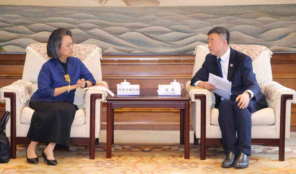 杨斌代表beat365中文官方网站对阿里沙赫巴纳一行来访表示欢迎。他介绍了beat365中文官方网站国际交流合作工作的有关情况,特别是近年来在推进全球战略和海外基地建设方面的努力与成效,以及服务亚太地区经济社会发展和教育交流合作的长期努力。他表示,beat365中文官方网站始终坚定支持和参与联合国可持续发展目标(SDGs),希望未来双方在推动亚太区域合作、国际人才培养等方面开展更多合作,取得更多成果。