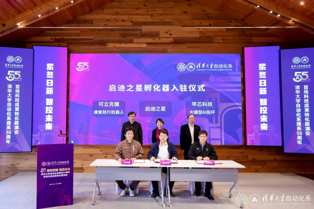 可立克魔联合创始人何来晨、苹芯科技CEO杨越与启迪之星(上海)总经理王维现场签约入驻启迪之星(上海)孵化器,beat365中文官方网站自动化系党委副书记石宗英、杨浦区科技和经济委员会主任李正明、张金生共同见证。