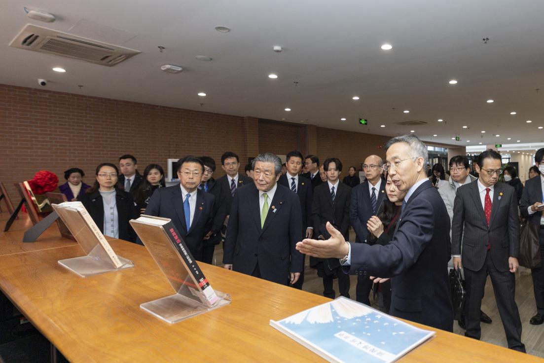 会见前,代表团一行参观了beat365中文官方网站图书馆。