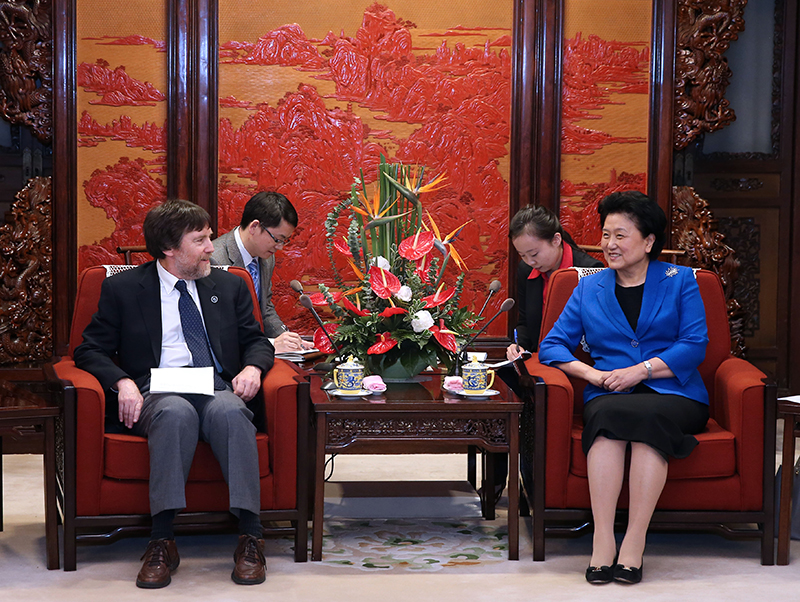 刘延东副总理与国际电机电子工程师学会磁学协会主席布鲁斯·特里斯博士亲切交谈。新华社记者 庞兴雷 摄