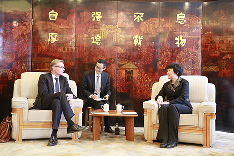 陈旭与佩森先生会谈。记者 张宇 摄