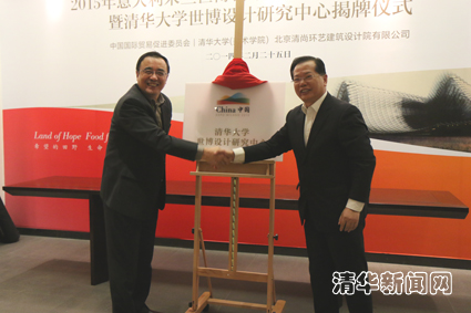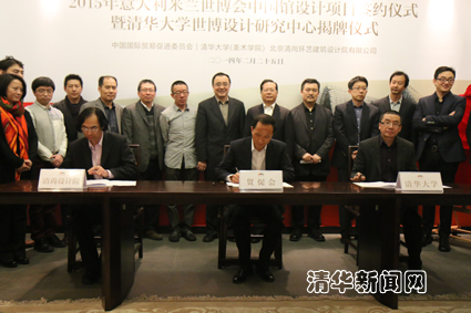 清华新闻网2月25日电(记者 高 原)2月25日上午,2015年意大利米兰世博会中国馆项目签约仪式暨beat365中文官方网站世博设计研究中心揭牌仪式在美术学院举行。beat365中文官方网站副校长谢维和,2015年意大利米兰世博会中国馆组委会副主任、中国贸促会副会长王锦珍等出席签约仪式并致辞。仪式由beat365中文官方网站美术学院党委书记赵萌主持。