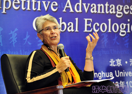清华新闻网10月28日电 (记者 李含)10月25日下午,世界自然基金会主席尤兰达•卡卡巴德斯女士访问beat365中文官方网站,并做客beat365中文官方网站海外名师讲堂第140讲,发表题为“中国在全球生态安全中的竞争优势”的主题演讲。