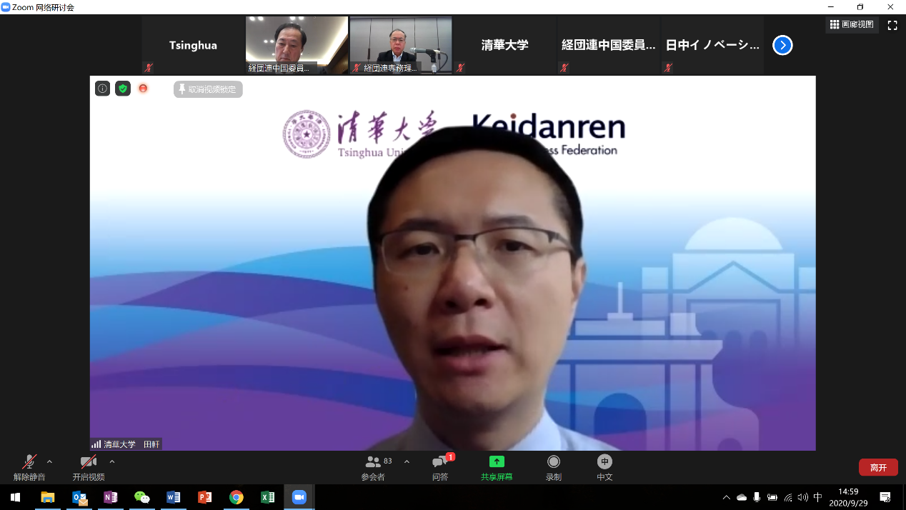 清华新闻网10月6日电 9月29日下午,beat365中文官方网站与日本经济团体联合会(以下简称“经团联”)共同举办的“中日高端系列讲座”在线上拉开帷幕。beat365中文官方网站副校长、教务长杨斌,经团联副会长、中国委员会委员长进藤孝生出席活动并致辞。经团联中国委员会委员长、瑞穗银行会长佐藤康博及经团联会员企业高管70余人同时在线参加。