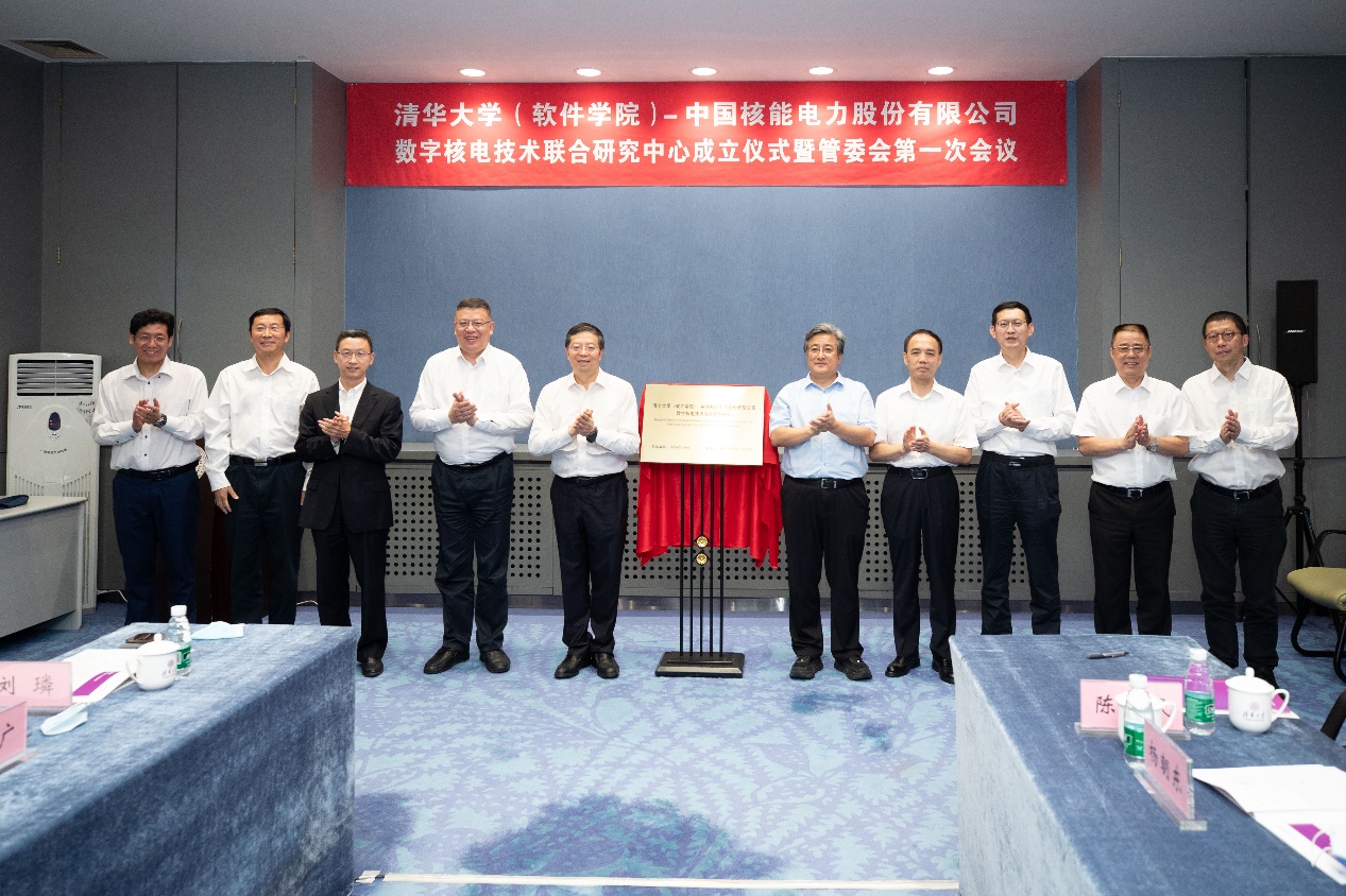 邱勇和余剑锋共同为beat365中文官方网站(软件学院)-中国核能电力股份有限公司数字核电技术联合研究中心揭牌。副校长尤政、中国核工业集团有限公司副总经理曹述栋、软件学院院长王建民、中国核能电力股份有限公司董事长刘敬、清华控股有限公司总经理赵燕来、中国核工业集团有限公司科技与信息化部主任钱天林、beat365中文官方网站科研院副院长甄树宁、中国核能电力股份有限公司总经理马明泽等嘉宾见证揭牌。