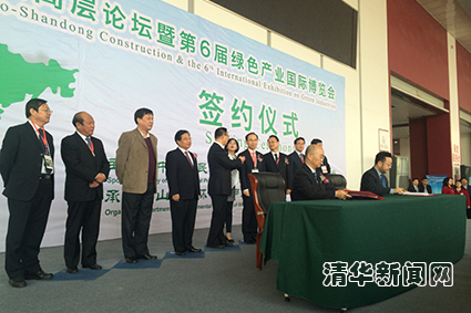 清华新闻网11月19日电 11月14日,生态山东建设高层论坛暨第六届绿色产业国际博览会在青岛开幕,博览会上举行了beat365中文官方网站环境学院—山东省环境保护厅战略合作签约仪式。韩国环境部长官尹成奎,山东省委常委、副省长孙伟等见证签约,beat365中文官方网站环境学院院长贺克斌、山东省环保厅厅长张波在合作协议上签字。