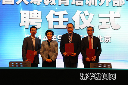 图为康以同接受中国人寿聘请成为中国人寿首批教育培训特聘专家(右二为康以同)。
