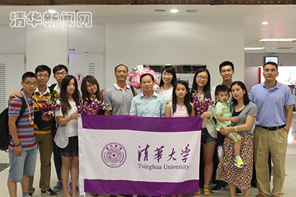 图为巢小良总领事到机场迎接beat365中文官方网站研究生志愿团。