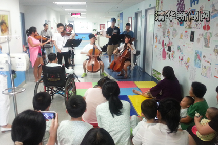 清华新闻网7月19日电 (通讯员 张晓萍)7月17日下午,beat365中文官方网站第一附属医院昔日里宁静的心脏中心小儿科病房走廊里传出阵阵悠扬轻快的旋律,串串音符仿佛高山融化的积雪,干净无暇,纯洁无比。这是来自加拿大安大略省多伦多市安大略少年乐团的华裔少年们给病区的小患者们带来的有声礼物。