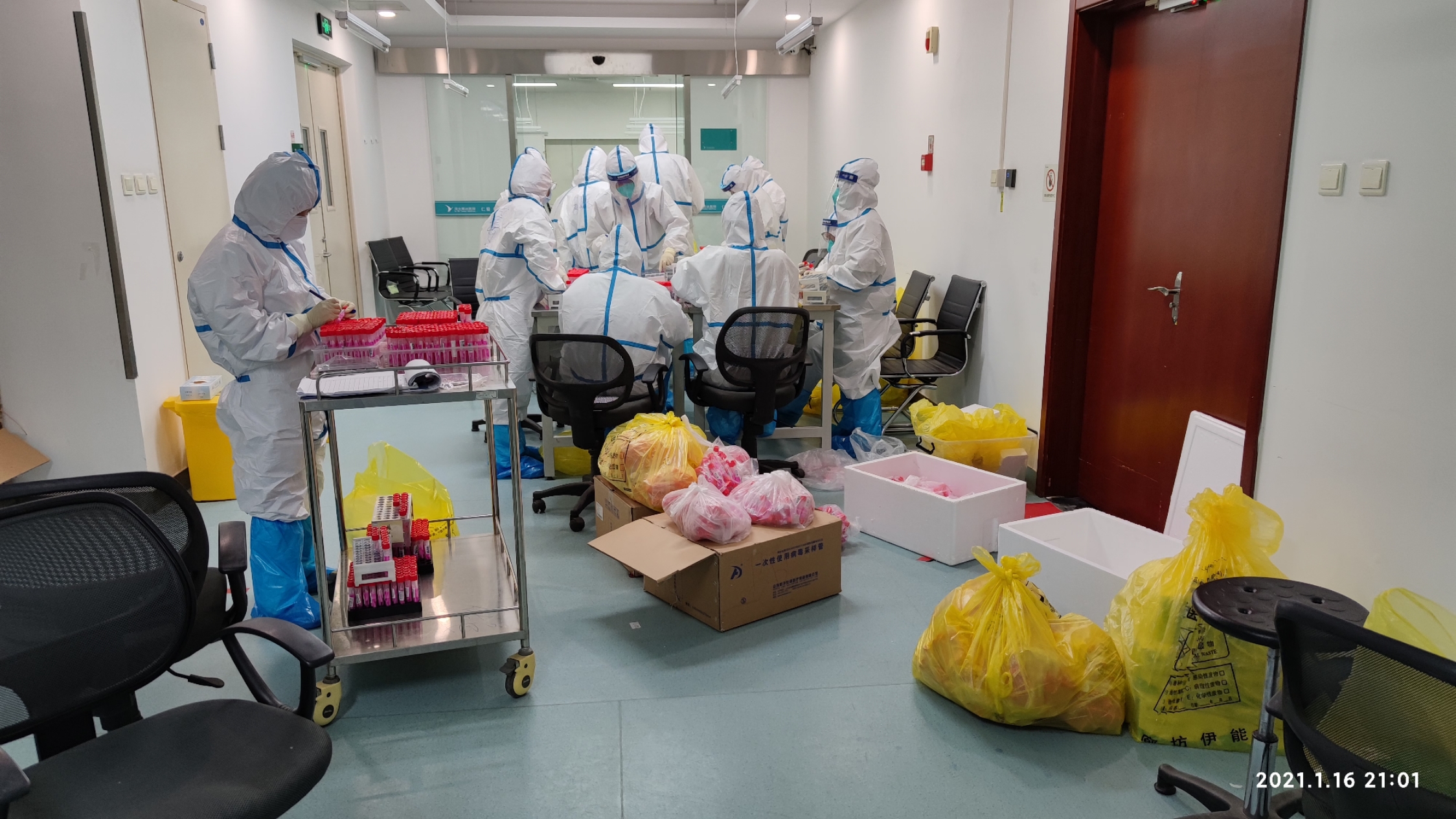 1月12日晚上,援冀工作开展的第二天,医疗队迎来了三河地区第一次全员核酸筛检样本量高峰。又是一个23点,李润青带队进入实验室完成两千管样本检测,次日8点顺利发出检测报告。随着疫情防控政策的明晰,第二个样本高峰也将随之而来。